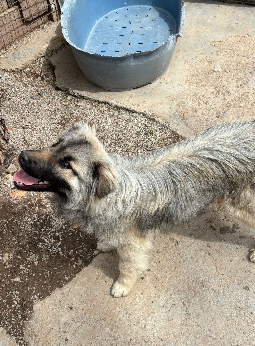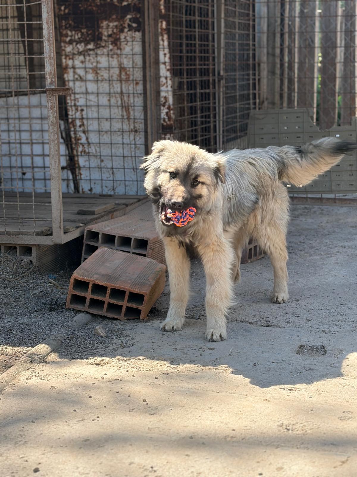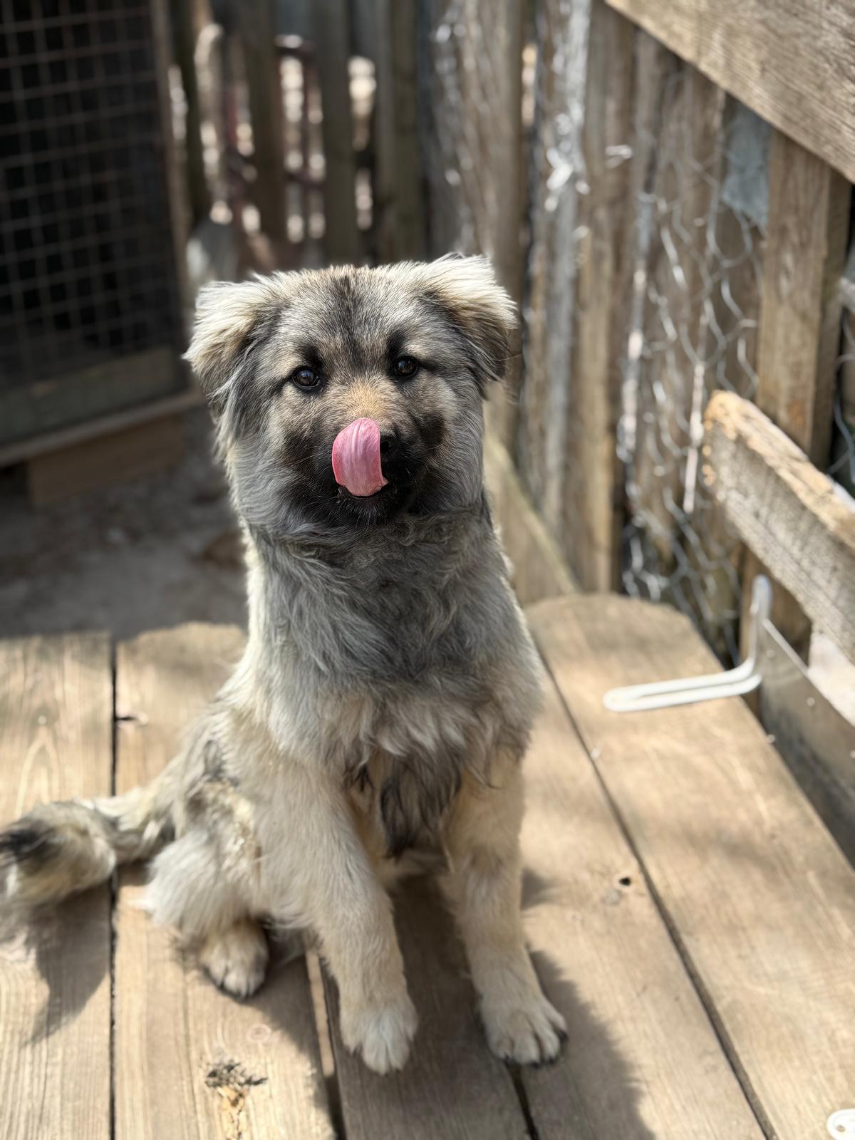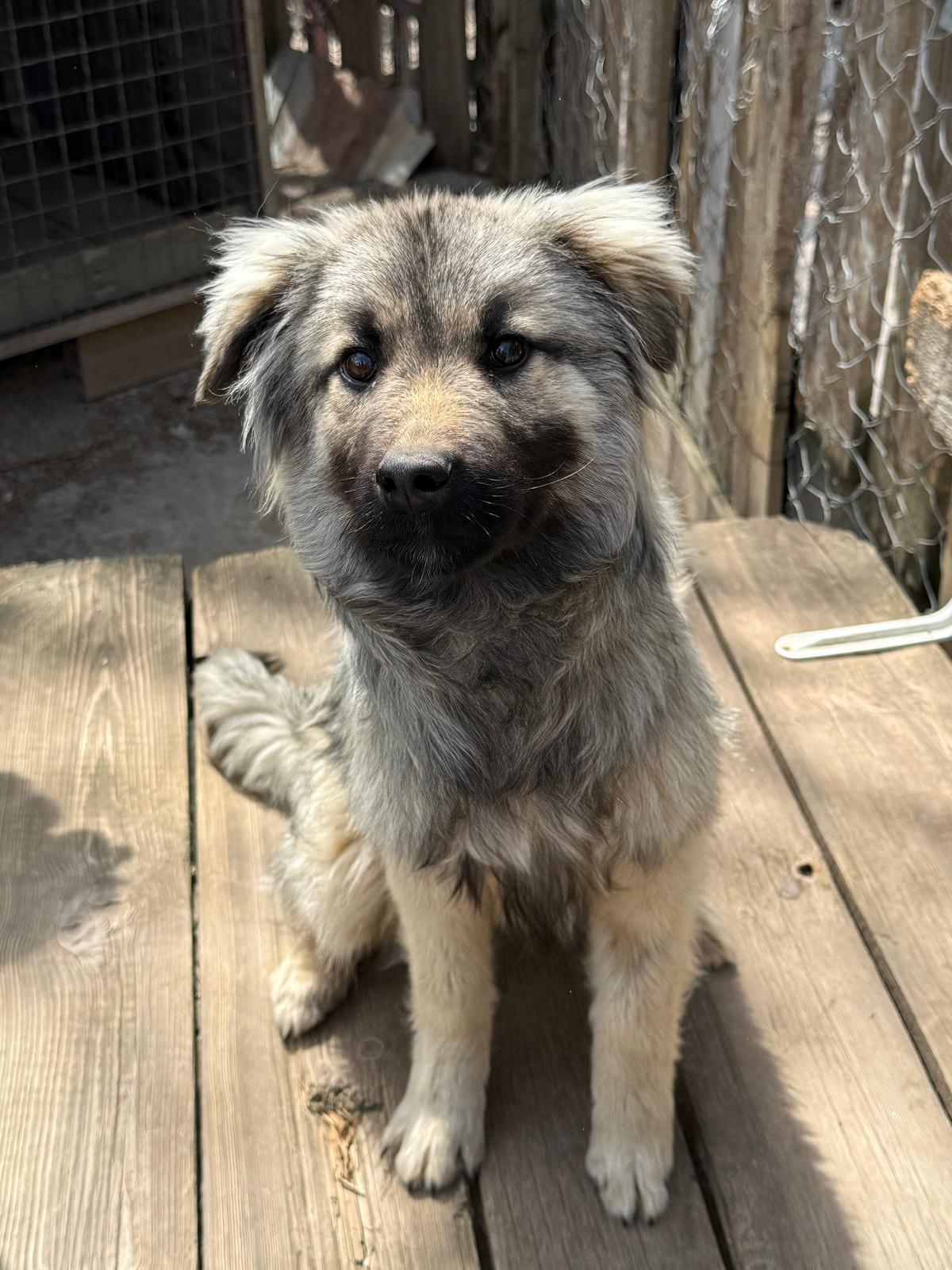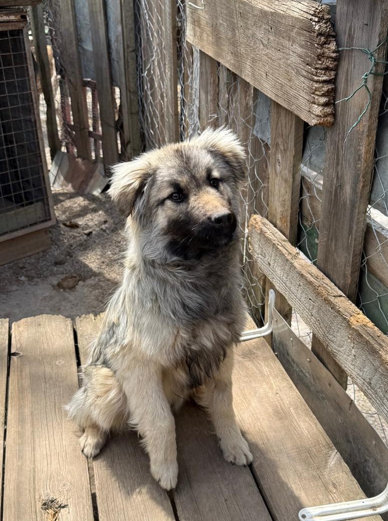 Floh wurde im September 2025 als junger Welpe allein auf der Straße gefunden und anschließend in unser Tierheim gebracht. Dort wuchs er zunächst gemeinsam mit mehreren anderen Welpen auf, aktuell teilt er sich einen Auslauf mit Kiwi.