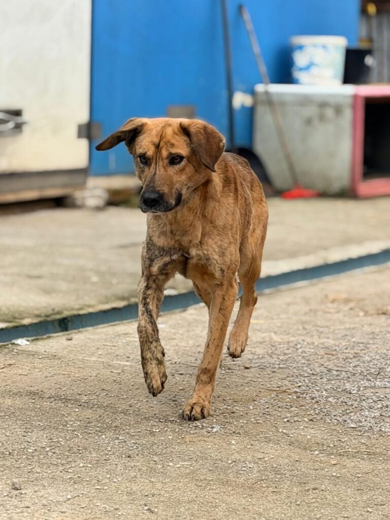 Mattheo wurde Anfang 2023 als Welpe zusammen mit seiner Mutter und seinen Geschwistern im Alter von etwa drei Monaten auf der Straße gefunden. Schon damals zeigte er sich ängstlich und misstrauisch gegenüber Fremden. Während seine Schwester Kira bereits im Herbst 2023 in ein neues Zuhause ziehen durfte, musste Mattheo im Tierheim bleiben. Fremden Menschen gegenüber ist er ängstlich und drückt sich in die letzte Ecke seines Zwingers. Wenn man auf ihn zukommt, bellt er, um Abstand zu halten, geht jedoch bisher nicht nach vorne, wenn er bedrängt wird. Mit seinen Bezugspersonen zeigt sich Mattheo verspielt und versteht sich sehr gut mit anderen Hunden. Bei unserem letzten Besuch im Januar ließen wir ihn in den Auslauf und mit Hilfe einer anderen Hündin, die keine Scheu vor fremden Menschen hat, konnte Mattheo seine Angst etwas überwinden und hat sich Leckerchen aus unsere näheren Umgebung abgeholt. Wir glauben daher, dass man mit Geduld und richtigem Umgang gute Ergebnisse bei ihm erzielen kann.
