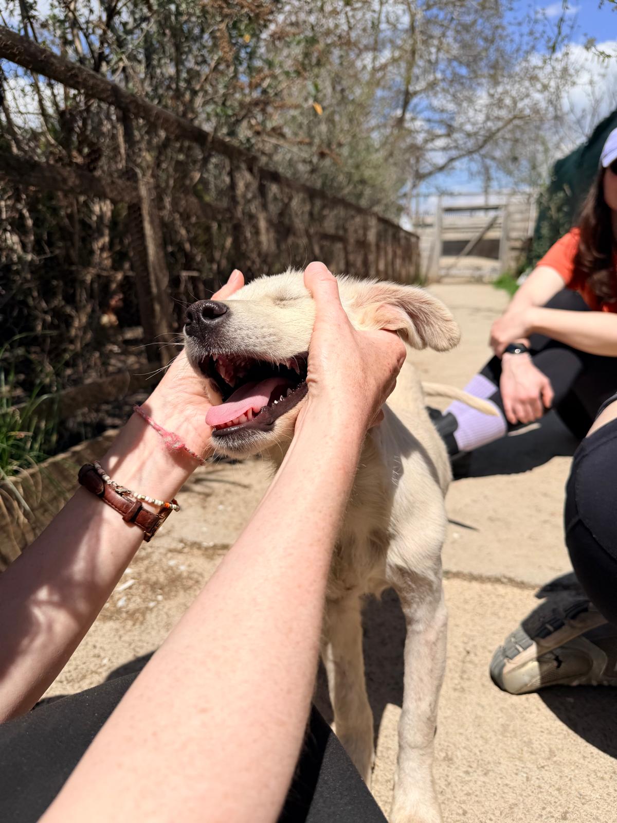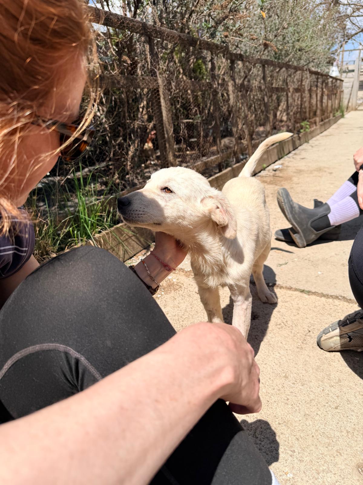 Bei unserem Besuch im April zeigte sich Möwe als sehr aufgeschlossen und zugeneigt. Sie war stets die Erste, die uns begrüßte, und suchte aktiv die Aufmerksamkeit von uns. Möwe lässt sich problemlos anfassen und auf den Arm nehmen. Da das Bein noch heilen muss, darf sie derzeit aber nicht mit den anderen spielen.