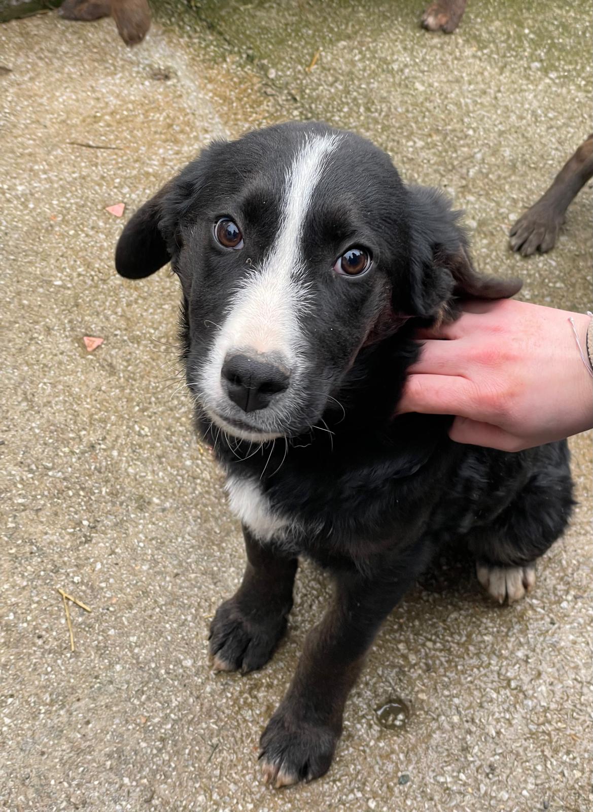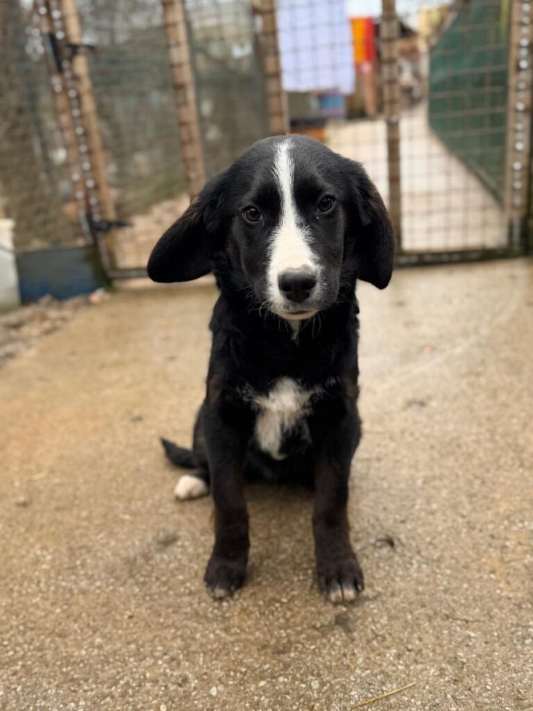 Oreo wurde gemeinsam mit seiner Mutter Kiani und seinen vier Schwestern im September 2025 von uns auf der Straße gefunden. Seither wächst er mit seinen Geschwistern zusammen im „Kindergarten“ unseres Tierheims auf. Bei unserem Besuch im Januar 2026 zeigte Oreo sich anfangs schüchtern, war dann aber einer der ersten, die uns gegenüber recht zügig aufgetaut sind. Hilfreich dabei, die Skepsis abzulegen, war definitiv seine Futtermotivation. Ein paar Snacks später war Oreo sehr umgänglich und kuschelte sich an uns heran, weswegen er sich bei allen Teammitgliedern vor Ort schnell ins Herz geschlichen hat. Oreo ist der größte Welpe des Wurfes und wird vermutlich ausgewachsen auch (deutlich) größer werden als seine Geschwister. Wir können seine Endgröße nur schätzen, könnten uns aber vorstellen, dass er bei +/- 55 cm Schulterhöhe herauskommen wird.