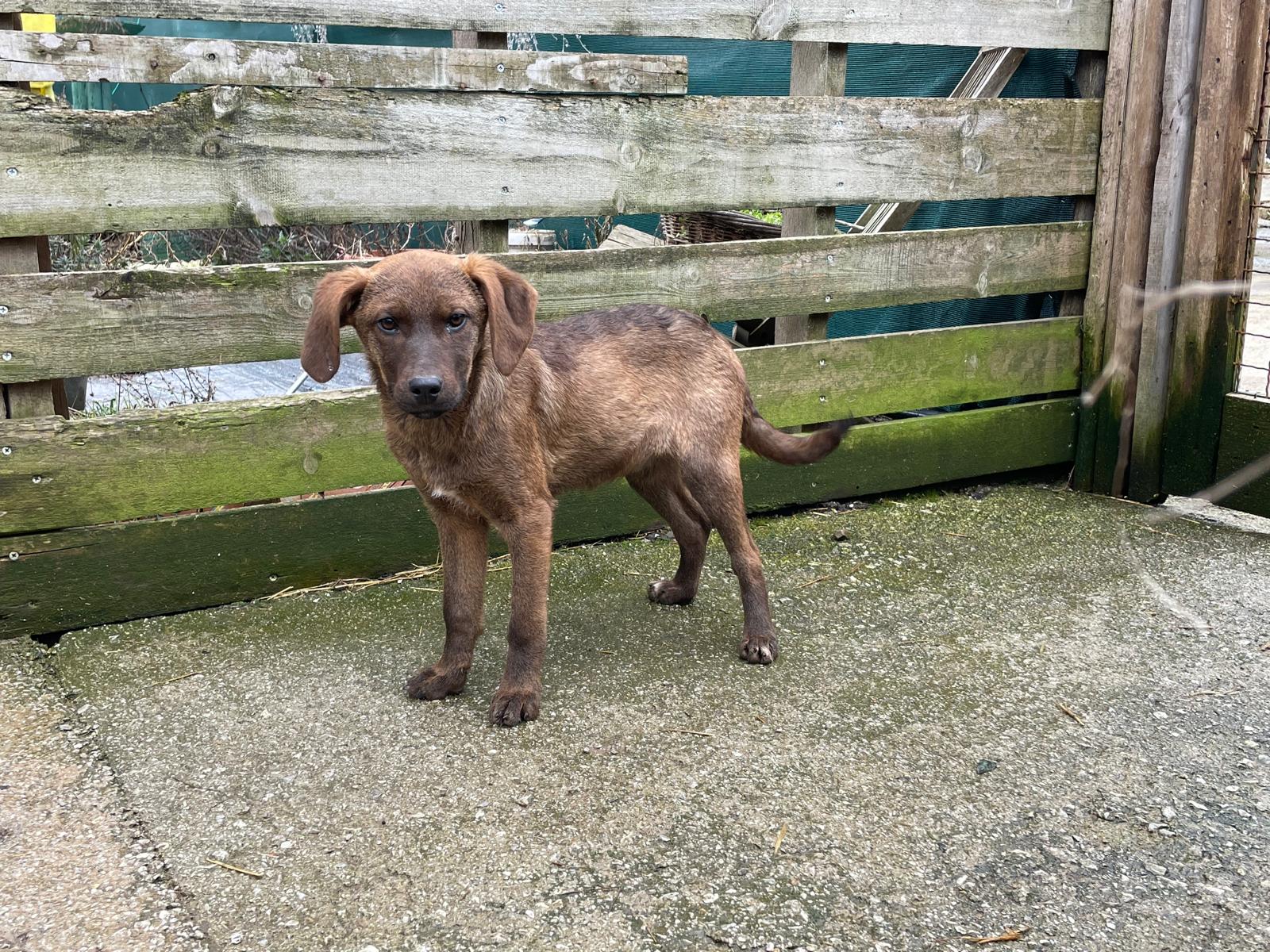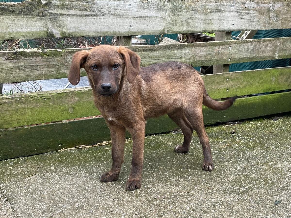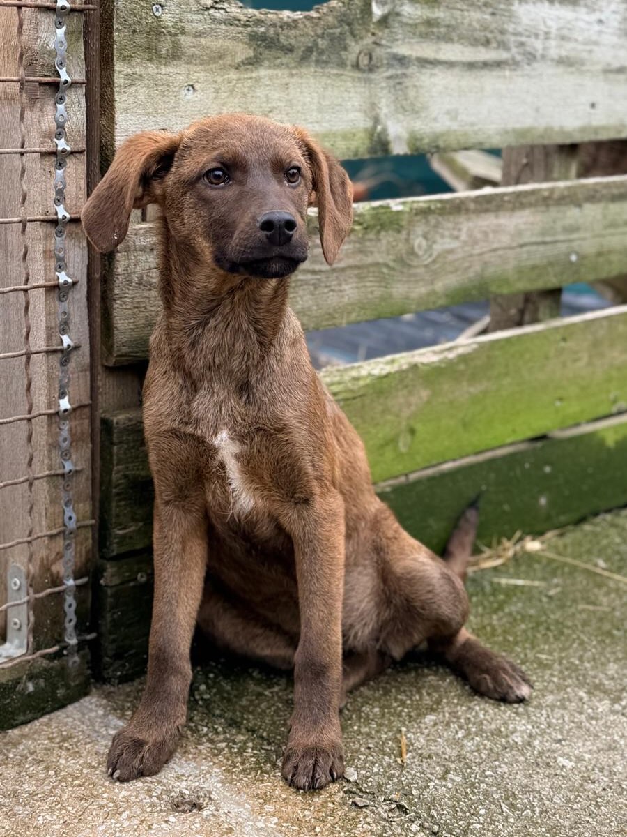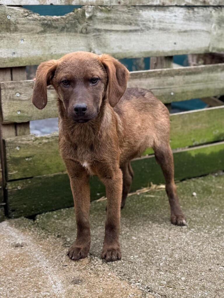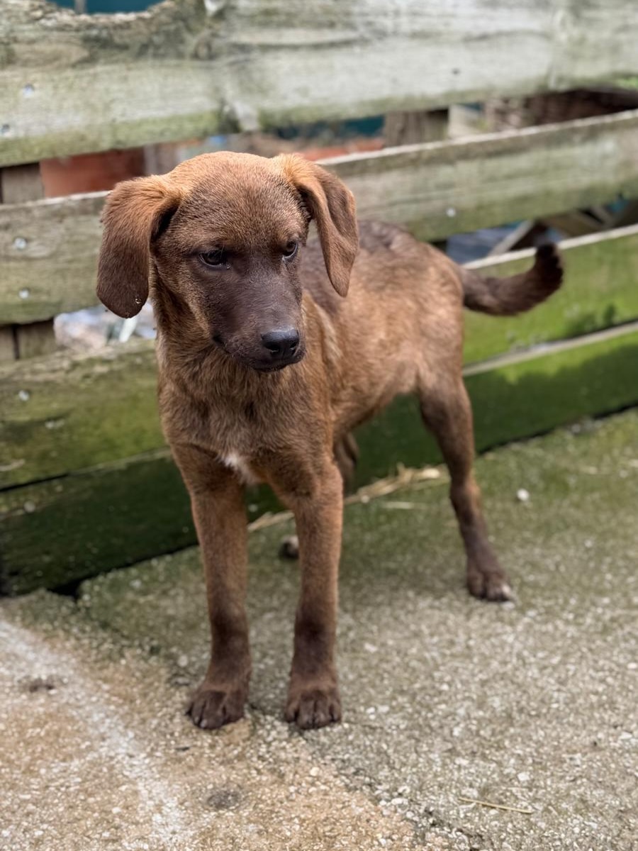 Toffee wurde gemeinsam mit ihrer Mutter Kiani und ihren 4 Geschwistern im September von uns auf der Straße gefunden. Seither wächst sie mit ihren Geschwistern zusammen in unserem Tierheim auf. Toffee und Snickers zeigten sich im Vergleich zu ihren Geschwistern als deutlich unsicherer und zurückhaltender im Umgang mit uns als fremden Besuchern. Anfangs war es uns nicht möglich, sie anzufassen. Am zweiten Tag hat Toffee sich dann aber getraut, auch sehr vorsichtig Leckerlis aus unseren Händen zu nehmen. Als ihre Geschwister sich von uns anfassen ließen, kam auch Toffee dazu und wir konnten sie ebenfalls kurz streicheln. Körpersprachlich war jedoch zu sehen, dass sie dies eher über sich ergehen ließ, statt es wirklich zu genießen. Im Vergleich mit den anderen Welpen gehen wir daher davon aus, dass Snickers etwas länger brauchen wird, sich gegenüber ihren Menschen zu öffnen. Auch sonst scheint sie eine eher unsichere Hündin zu sein, die vermutlich mehr Zeit braucht.