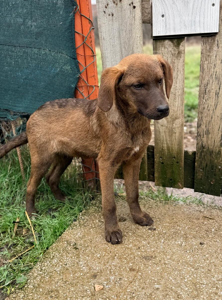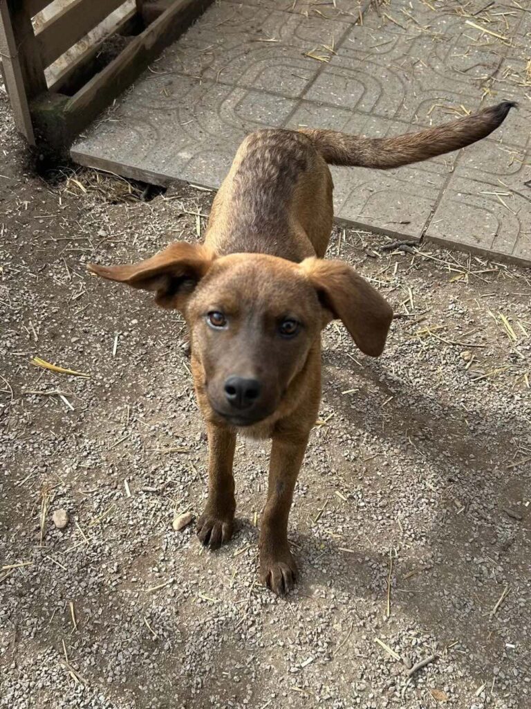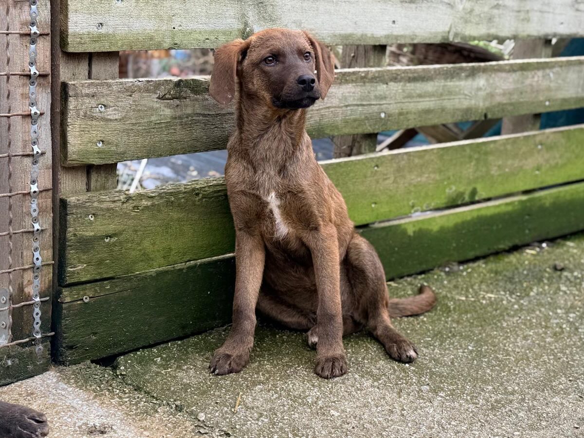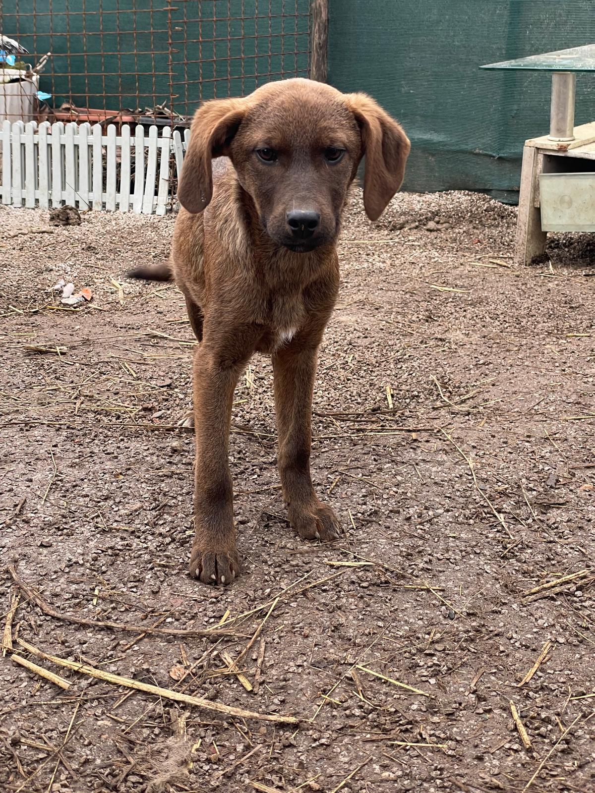 Toffee wurde gemeinsam mit ihrer Mutter Kiani und ihren 4 Geschwistern im September von uns auf der Straße gefunden. Seither wächst sie mit ihren Geschwistern zusammen in unserem Tierheim auf. Toffee und Snickers zeigten sich im Vergleich zu ihren Geschwistern als deutlich unsicherer und zurückhaltender im Umgang mit uns als fremden Besuchern. Anfangs war es uns nicht möglich, sie anzufassen. Am zweiten Tag hat Toffee sich dann aber getraut, auch sehr vorsichtig Leckerlis aus unseren Händen zu nehmen. Als ihre Geschwister sich von uns anfassen ließen, kam auch Toffee dazu und wir konnten sie ebenfalls kurz streicheln. Körpersprachlich war jedoch zu sehen, dass sie dies eher über sich ergehen ließ, statt es wirklich zu genießen. Im Vergleich mit den anderen Welpen gehen wir daher davon aus, dass Snickers etwas länger brauchen wird, sich gegenüber ihren Menschen zu öffnen. Auch sonst scheint sie eine eher unsichere Hündin zu sein, die vermutlich mehr Zeit braucht.