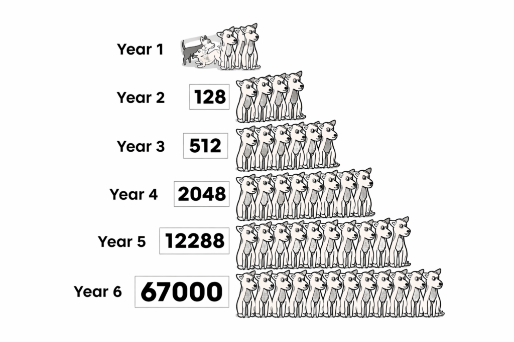 Дали знаете дека само едно нестерилизирано/некастрирано куче и неговото потомство можат да доведат до илјадници кучиња за само неколку години?